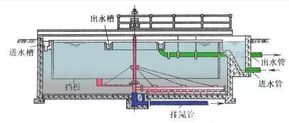 a.平流式沉淀池:构造简单,沉淀效果较好,但占地面积较大,排泥存在的问题较多,目前大、中、小型污水处理厂均有采用。